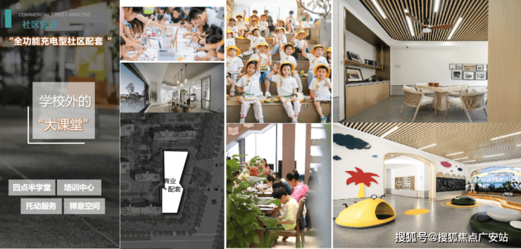 全功能型社区配套空间:四点半学堂、幼托中心、室外体育中心:600㎡体育场地、室内儿童运动中心、科研角、读书角、培训中心、禅意空间等