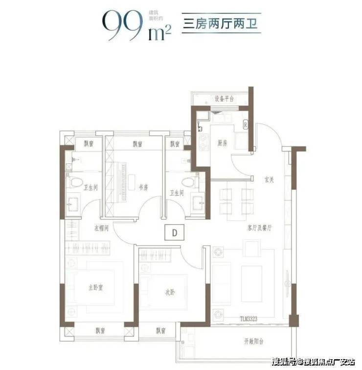 户型特点: 阳光三房,同等面积更多功能;宽幅南向观景阳台,把居住变成风景;步入式衣帽间,给予生活更多从容。
