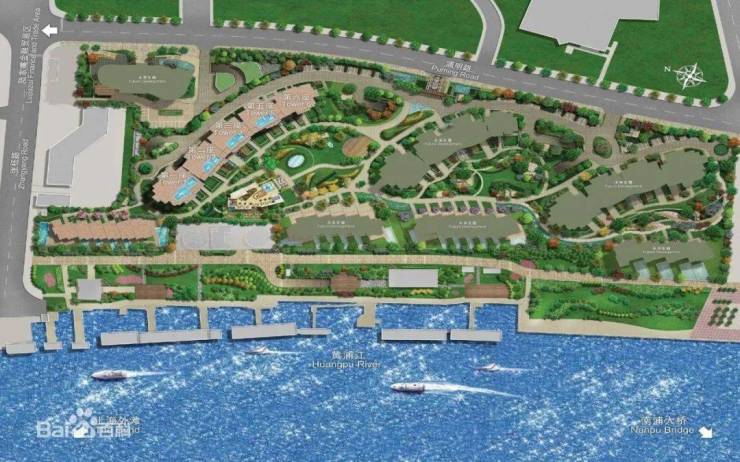 住宅区沿地块东北面浦明路往西南黄浦江畔长廊排列,建筑群组主要分为三大区片,由高层住宅、以及低层住宅建筑群组成。小区会所设于高层住宅群组间,以方便住客使用。