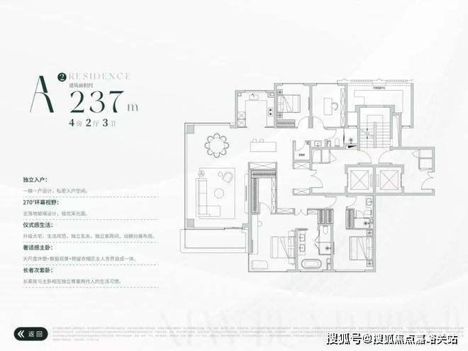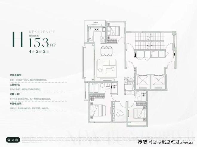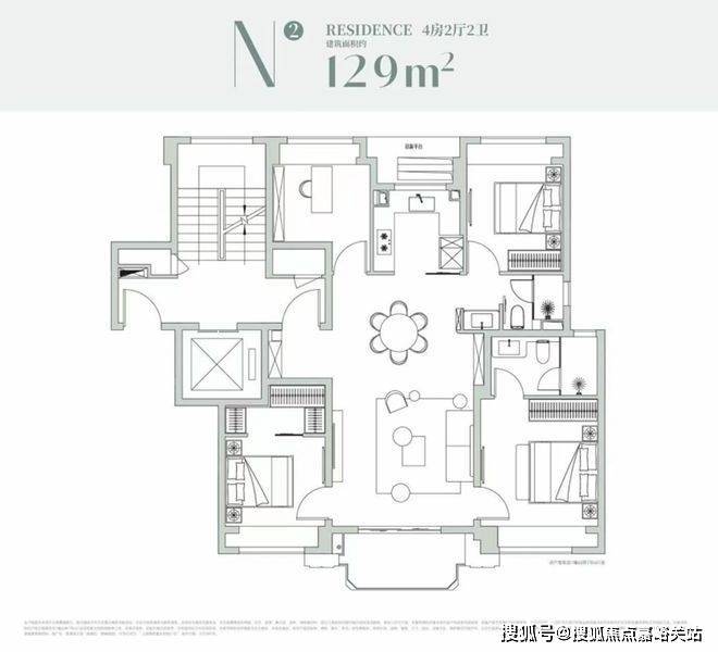 2#总高12F-13F,首层部分为社区配套+沿街商业+架空层,户型为建面约189-199㎡4房2厅3卫,两梯两户,层高约3.15米;