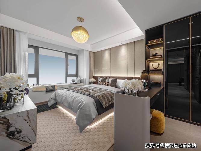 次卧的色调相对更为深邃,设计师通过不同的色彩选择,为静谧的氛围赋予了别样的诠释。有的空间明亮温暖,有的则内敛深沉,各种高品质材料相互搭配,编织出柔软而舒适的触感,再辅以恰到好处的艺术装饰,将空间的高级感提升到新的高度。