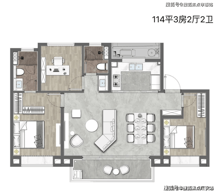 奢阔主卧套房,面宽和进深都很充裕,为每一个生活场景预留了足够的空间,可打造衣帽间,舒适感和品质感双重加持。