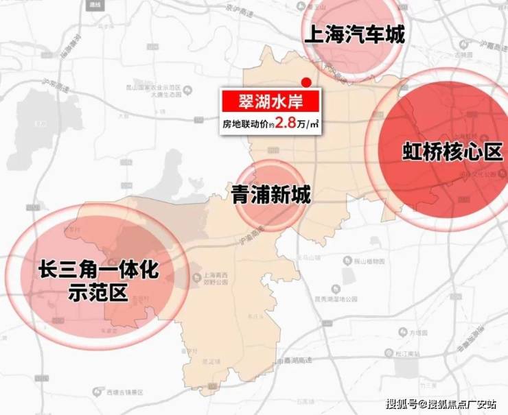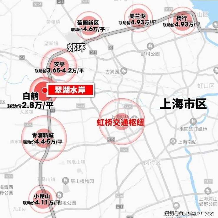 翠湖水岸项目位于虹桥西,距离虹桥核芯区直线距离约17公里,妥妥的背靠大虹桥,坐拥大虹桥板块发展红利,东临虹桥商务区(房地联动价约6.4-6.95万/m²),南靠青浦新城(房地联动价约4.4-5万/m²),北接安亭核芯(房地联动价约3.65-4.2万/m²),西瞰朱家角(房地联动价约4.2万元/m²),周边总价200万以下通勤刚需新房几近绝迹,全上海少有的性价比优选。