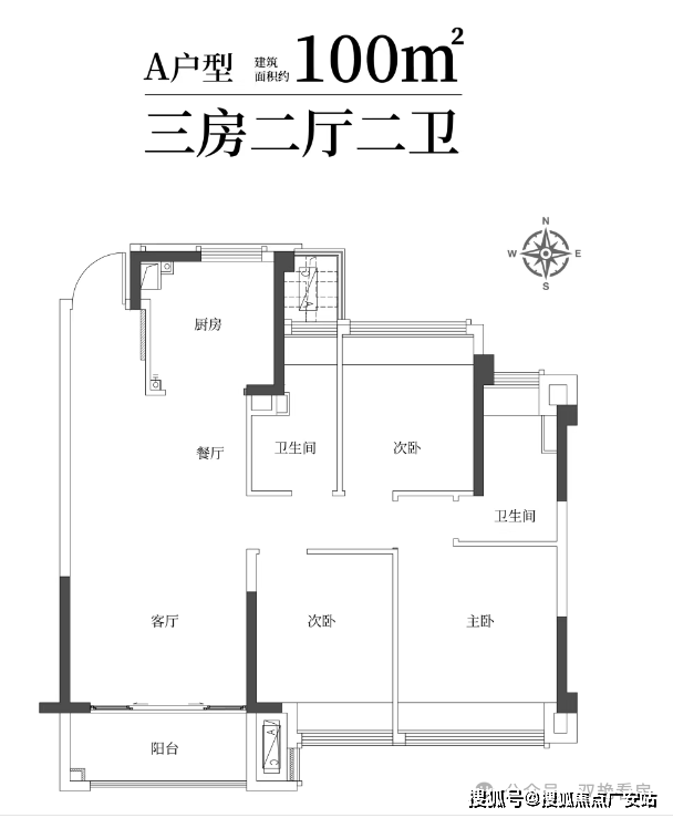 03建筑面积约100㎡雅致三房两卫,满足二娃时代