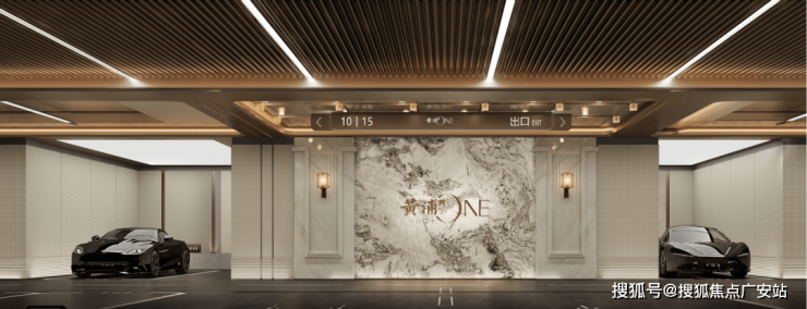运用深色石材、仿古铜弧形铝板与大面超白玻璃,