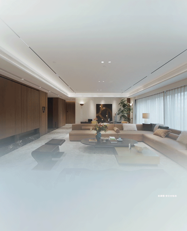 超80%的得房率,LDK一体化厅+西厨岛台,L型大面积转角落地窗,呈现出270度的幕布视野,这个王者公区的尺度不到现场来看,根本是你想象不到的震撼!
