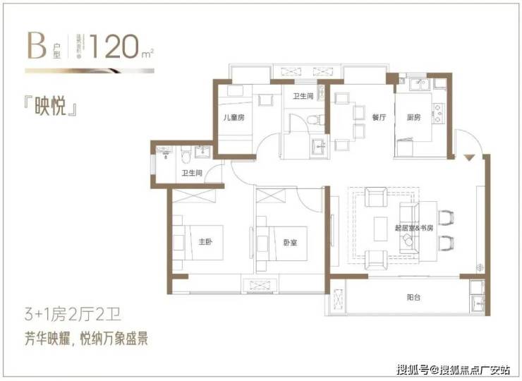 约120㎡3+1房2厅2卫。奢阔大横厅,IMAX巨幕观景阳台,独立书房或多功能房设计,主卧套房配置,兼顾私密性与实用性。