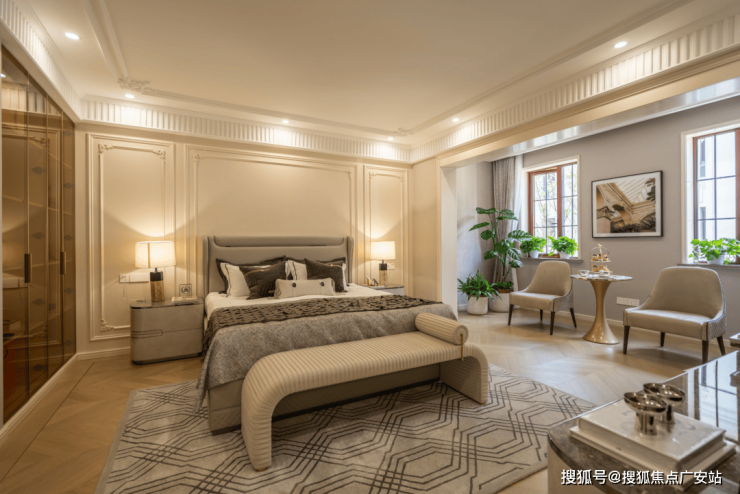 以建面约350㎡边套为例,一楼三面为花园环绕,室内空间完全留给客餐厅与厨房;二楼则是尺度阔绰的三间套房,确保整个家的动静区分离。