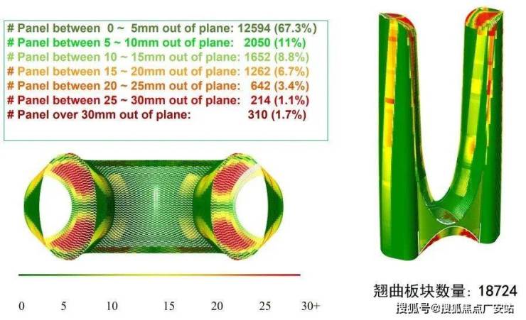研究整个立面中所有玻璃板块的弯曲尺寸