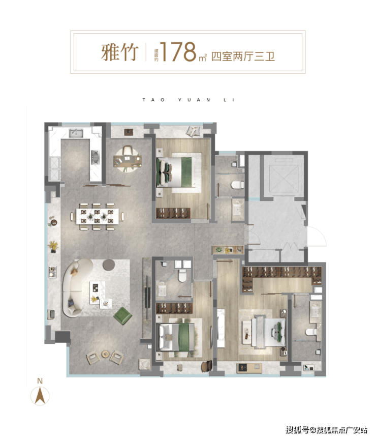 166-178㎡:4 房,约 1350-1450 万(高端改善)