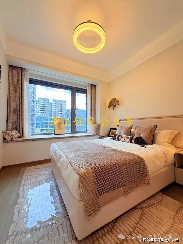 主卧豪华套房,预留衣帽间空间,配备独立卫浴,且配置双台盆+大浴缸,以五星级酒店式的卫浴配置,演绎居家生活的奢享;主卧打造南向大飘窗,配合以转角采光窗,呈现未来轻办公与午后茶饮的最佳空间。