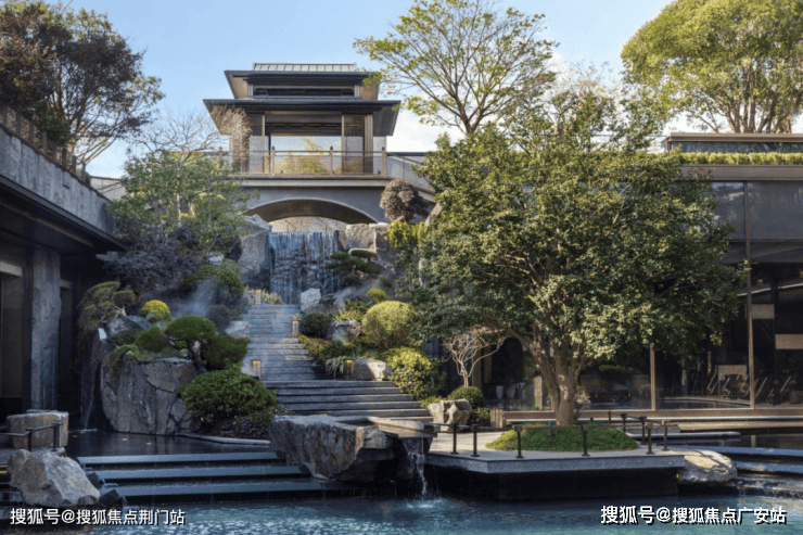 景观体系同样升级为一座“立体浮岛”,下沉庭院借鉴西湖郭庄的造园手法,游廊、亭榭与飞瀑浅水交织成景,意境深远。
