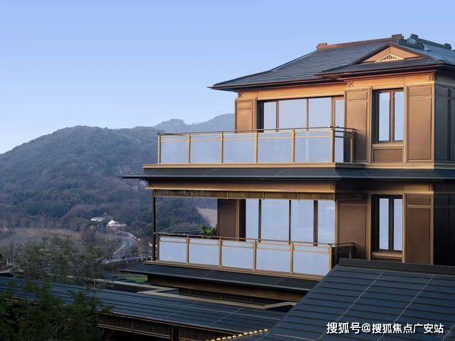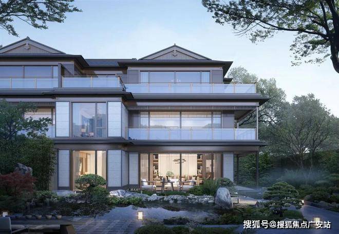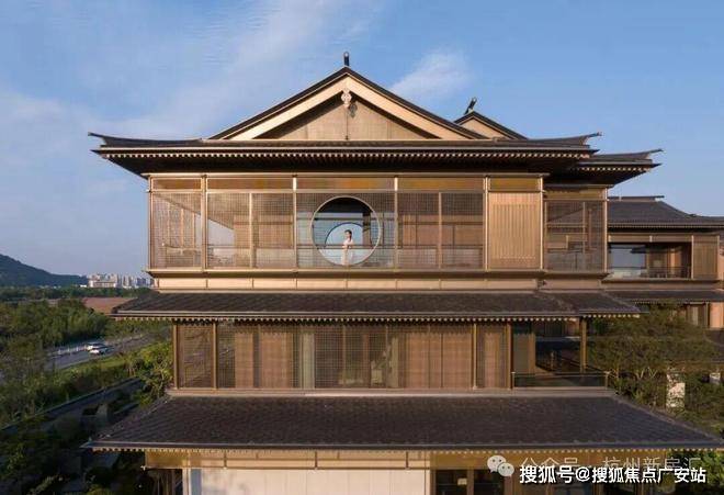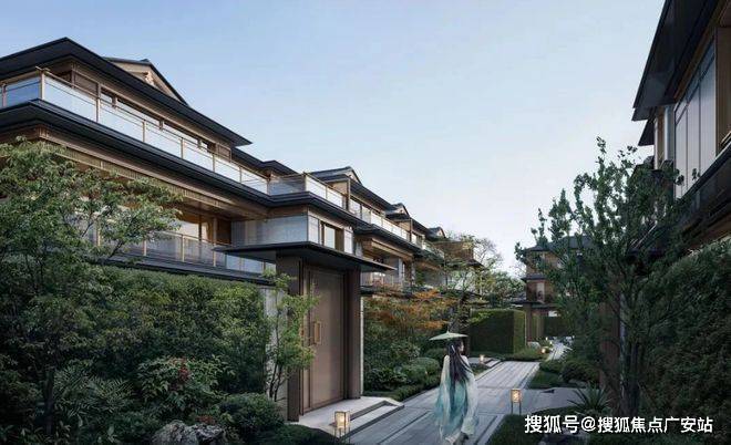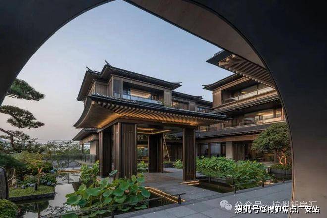 建筑立面:古今交融的诗意表达:外立面以香槟金铝板为基调,搭配蓝眼睛石材与玻璃幕墙,融合传统歇山重檐、纳福悬鱼等元素,既保留宋式建筑的对称美学,又赋予现代建筑的轻盈通透。合院组团采用三面庭院设计,L型景观面与环绕式檐廊,将超山梅影、丁山湖光引入每一扇窗景!