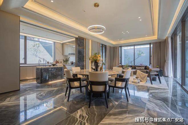 漫步于光影交织的幽静庭院,您将踏入一方充满诗意的天地。潺潺流水映照着婆娑树影,挺拔树姿为这片空间注入向上的生机,纵向延伸出无限的视觉张力。这座下沉庭院,不仅拉近了建筑与自然的情感共鸣,更使室内与景观紧密相连、和谐相融。每一扇窗户,都犹如框中的一幅生动山水画。