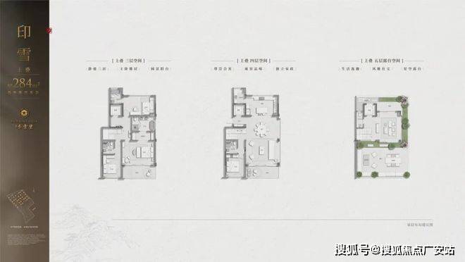 合院就更绝了!建面约296方,首层阳光空间,立体院落设计,叠加客厅、餐厅、阔绰卧室等,有天有地,一席难求;二、三层布局书房、多套房、星空露台等,在寸金寸土的都市,过上有情有调的院落生活,岂不美哉?