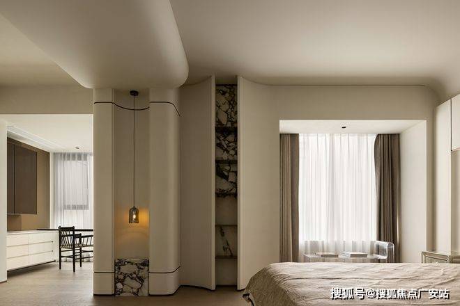 LDBK一体化的公区,充分实现了家庭成员间的互动;除了边厅外接的阳台外,南向次卧同样设计了阳台,兼顾了景观和晾晒的需求。