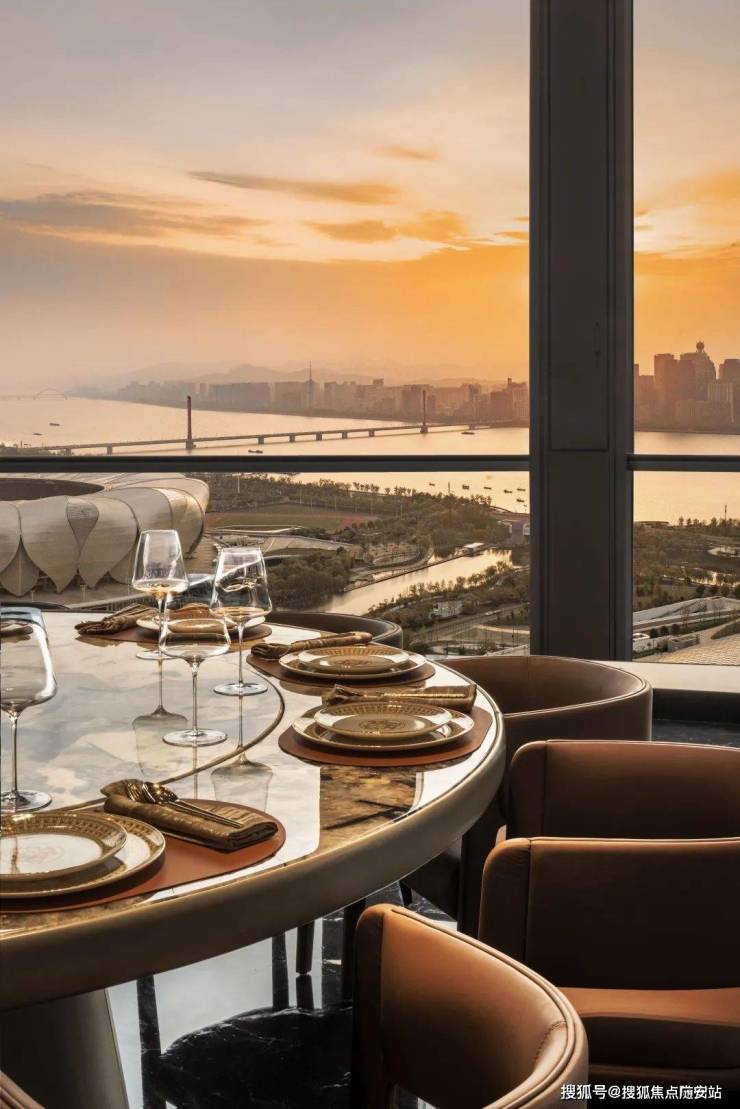 站在窗前,钱塘江奔流涌动,四季晨昏切换着光影美学。奥体"莲花碗"的银色波浪与杭州之门玻璃幕墙交相辉映,仿佛G20峰会的流光与亚运的激情在空间中碰撞。远望西湖远黛,山色有无中的诗意如翡翠温润;近揽"国博"园林,如翡翠列席点睛。这里每一扇窗都是取景器,收藏着杭州"西湖时代"、"钱塘江时代"、"奥体时代"的光泽温润入心。