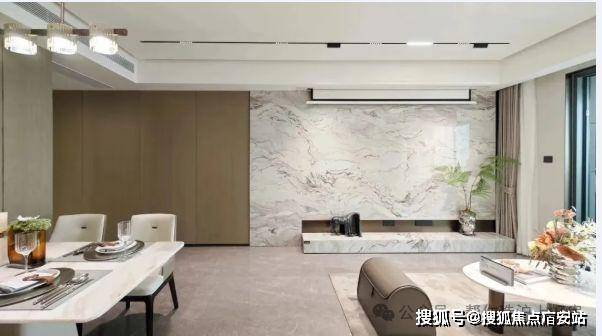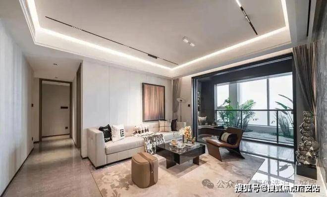 整体效果现代精致,十分符合当下年轻人的审美观;星级酒店式入户门,挑高约7米,宽约60米;石材金属线条背景墙加暖色系夜灯搭配,中庭花园水岛层叠、景墙错落,槭树青红间季节流转的温情脉脉展现,精致的水景让居住者仿若初入剧宴,感受剧目的艺术呈现……
