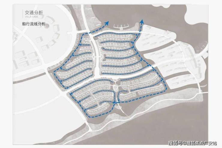 这个项目与迪拜棕榈岛甚至有相似之处,两条内部规划道路为主轴和车行道路,联排别墅如棕榈叶一般舒展开来。