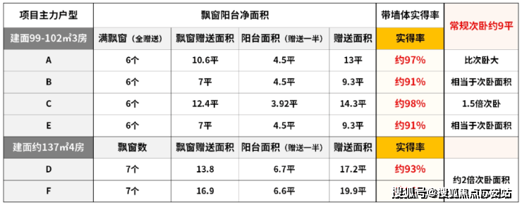 全系户型标配 “全屋飘窗(全赠送)+大阳台(半赠送)”,经专业测算,百平米中间套实得率约 91%,赠送面积达9.3㎡,相当于一间次卧。