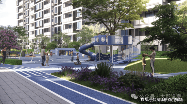 3⃣园林·美学:水韵主题中轴景观带,串联起不同功能空间,充分满足全年龄段住户的户外生活需求。
