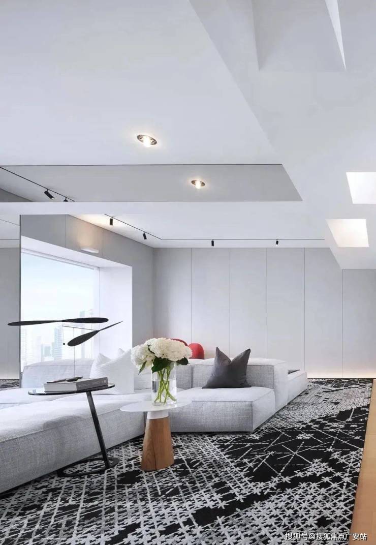 大片的无死角落地窗,占据了整面墙体,都市的景观一览无遗。