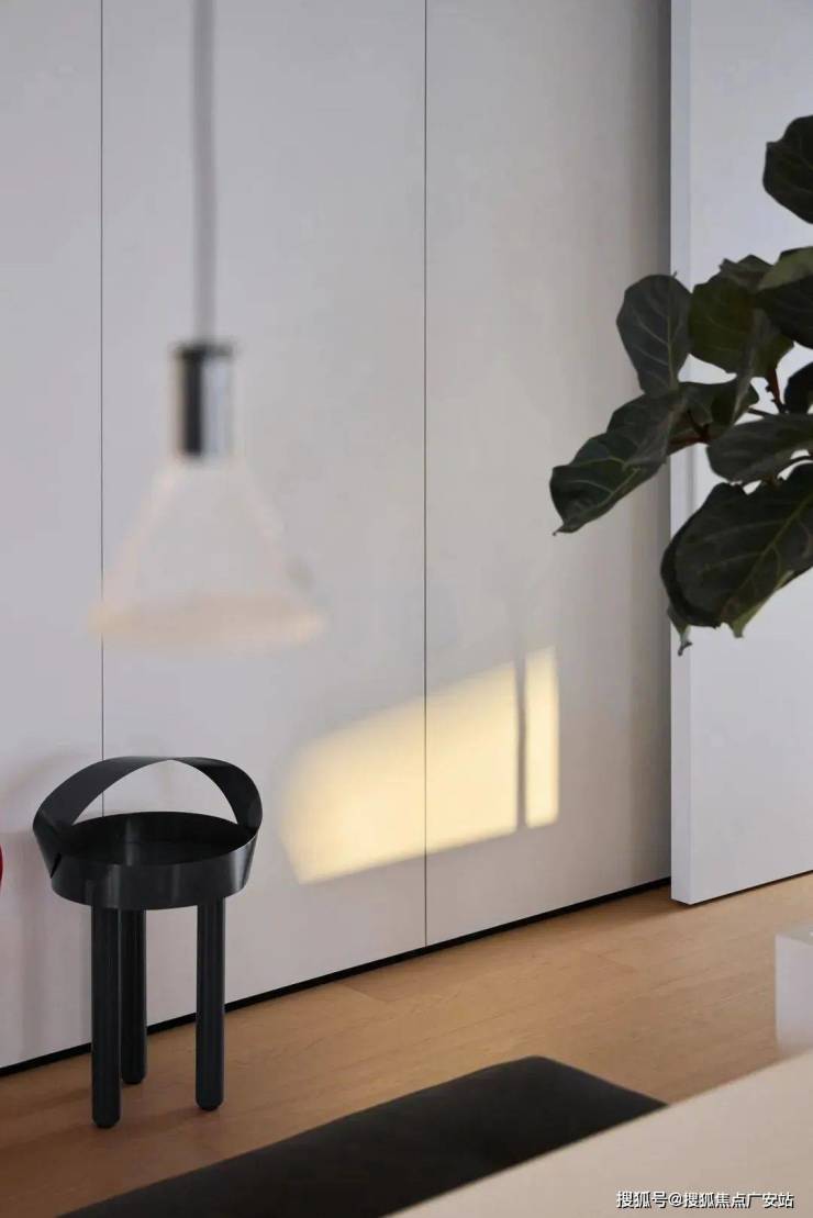 设计师以“开合的秩序”为核心概念,两扇隐形的推拉门是整个空间的调节装置。门扇闭合时,书房变成独立的空间,打开时,又很好的融入客厅场所。