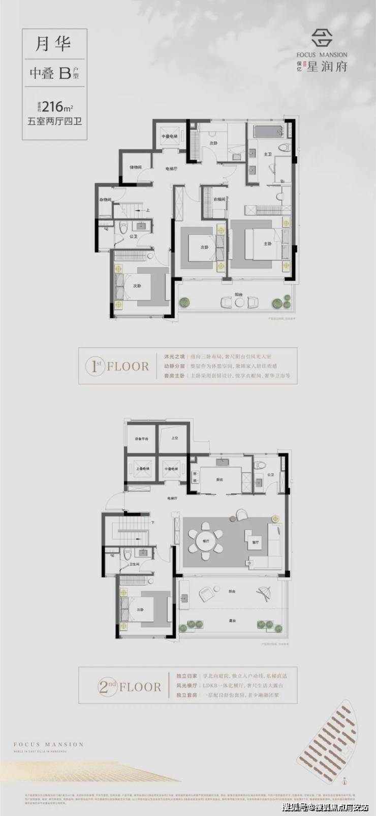 保亿・雲隐星润府共推出三种户型,分别是建面约 213 方下叠 A 户型、建面约216 方中叠 B 户型和建面约 218 方上叠 C 户型。
