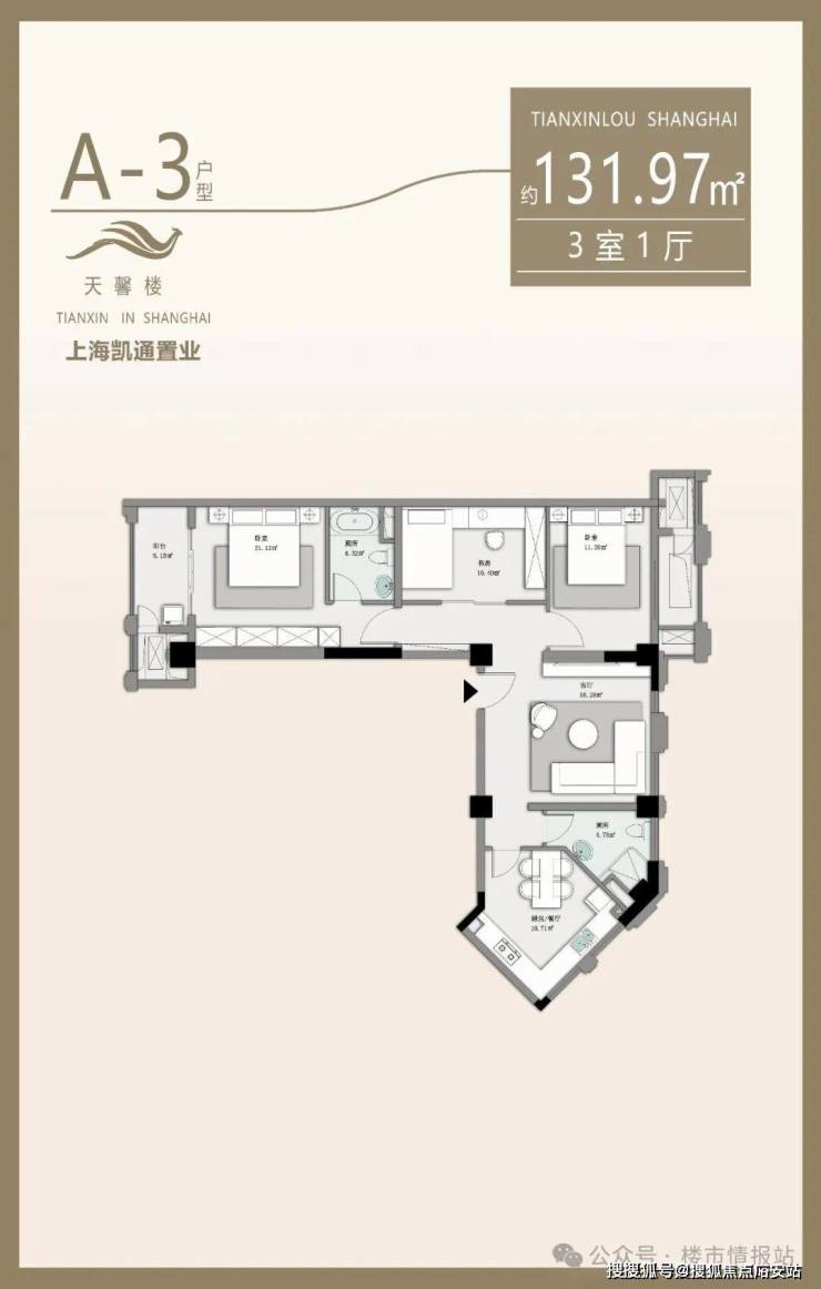 ●C户型(131.97㎡):三室一厅两卫,功能分区科学,适应多代同堂的温馨需求。
