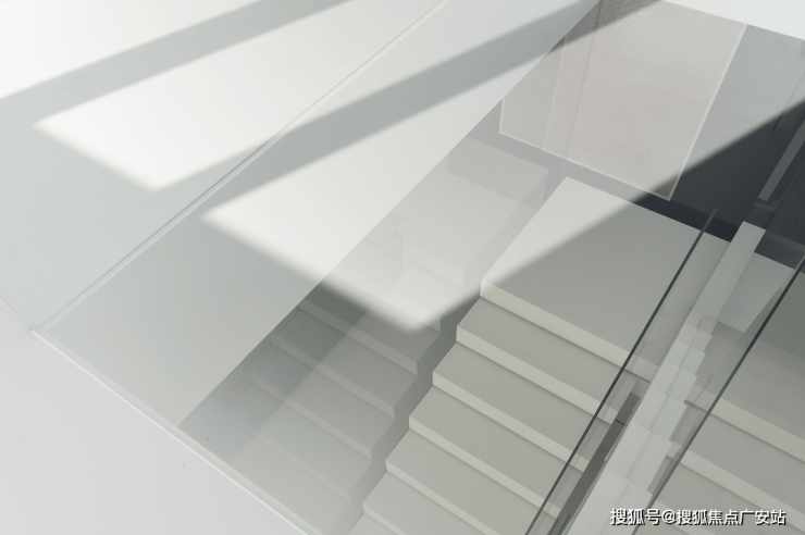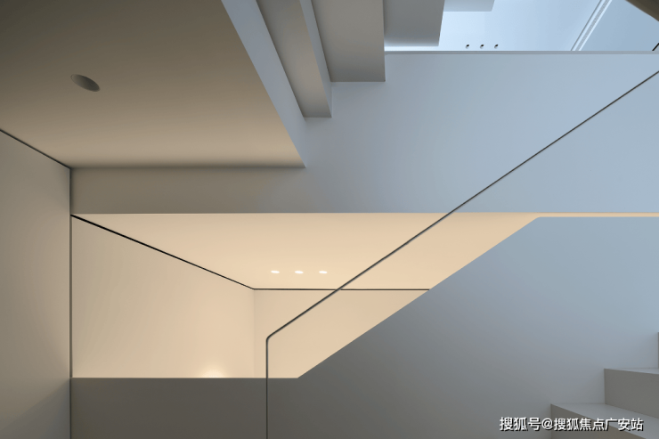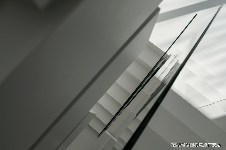 楼梯选用了纯白色,光是唯一的装饰品,在寻常中展现着空间最为纯粹的美。