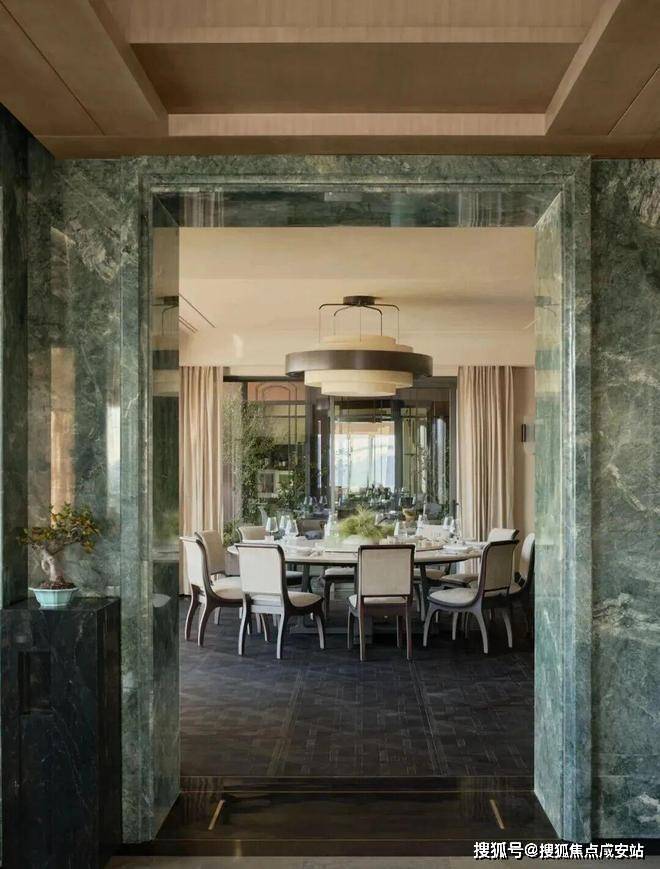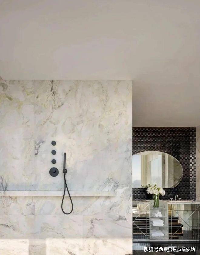 从选材来看,各种奢侈品级石材随处可见,比如与北京钓鱼台国宾馆同款的意大利进口鱼肚白石材,造价高达约2万/㎡,被誉为“世界上最贵的石材之一”!