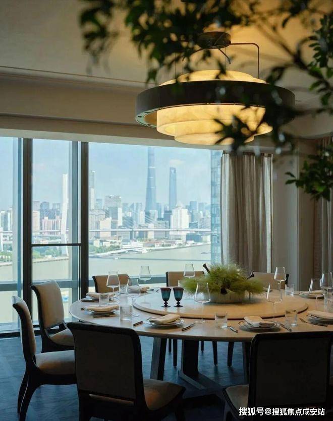 建面约240㎡边套,采用L型转角落地窗,打造了270°环幕瞰江视野,无论身处客厅、餐厅,都能以不同角度眺望黄浦江的波光粼粼。