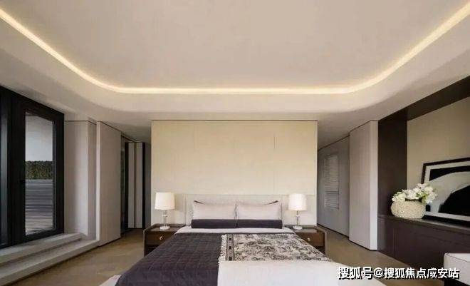 私密场域依旧保持静谧,黑白色基础上搭配了更多的色彩,例如深棕、浅紫等,艺术品的衬托深邃迷人,热络了家的氛围。