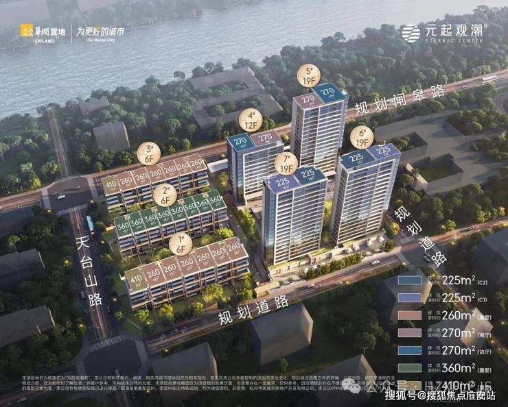 作为华润置地入杭20周年中心壹号作品,元起观潮总占地面积约2.2万,总建筑面积约7.8万方,容积率2.3,总户数186套,其中云幕高层130套,建面约225㎡、270㎡;凝练“元起五观三潮”领先产品体系,为杭州立序封面作品,为豪宅划时代。