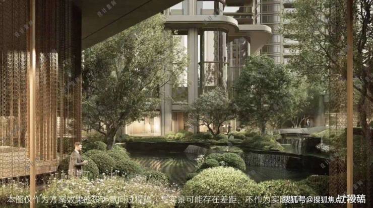 在全域抬板约4米的基础上,项目又下挖,形成罕见垂直落差。依托这一独特地形,项目打造“沿街古树花园+板上浮空花园+板下流石花园”的多层立体景观体系。