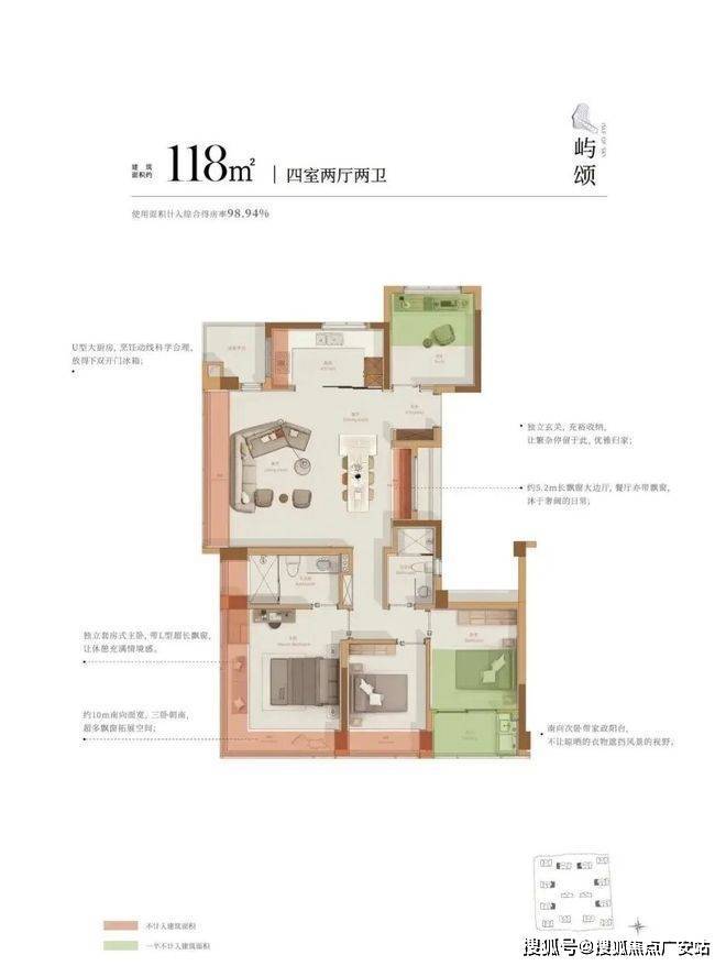 建面约118方户型: