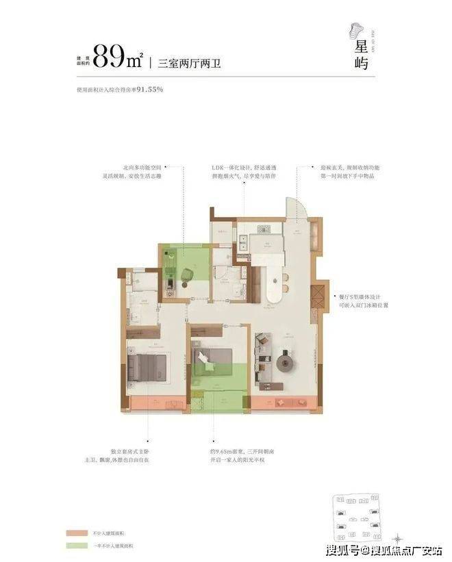 建面约89方户型: