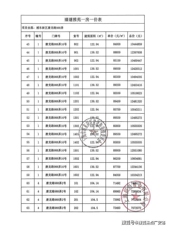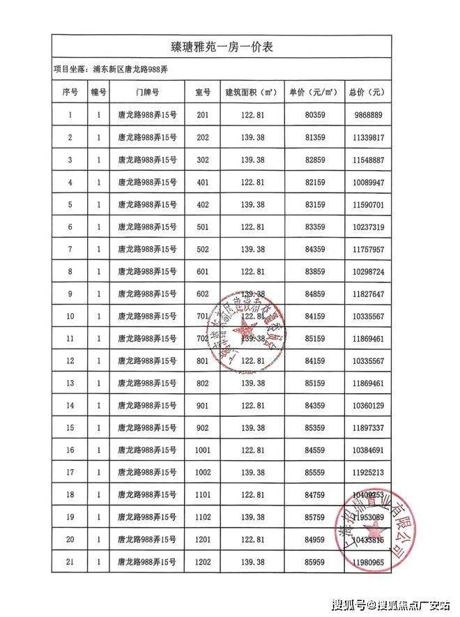 项目一房一价表