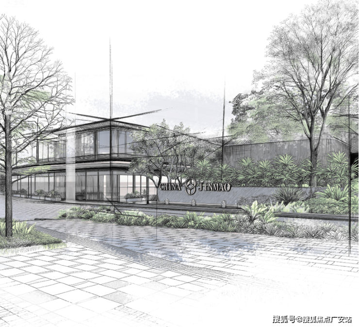 与整个地块周边环境实现一体化衔接之后,金茂璞元进一步考虑的是,如何在狭长型地块上,勾勒出独树一帜的园林景观。