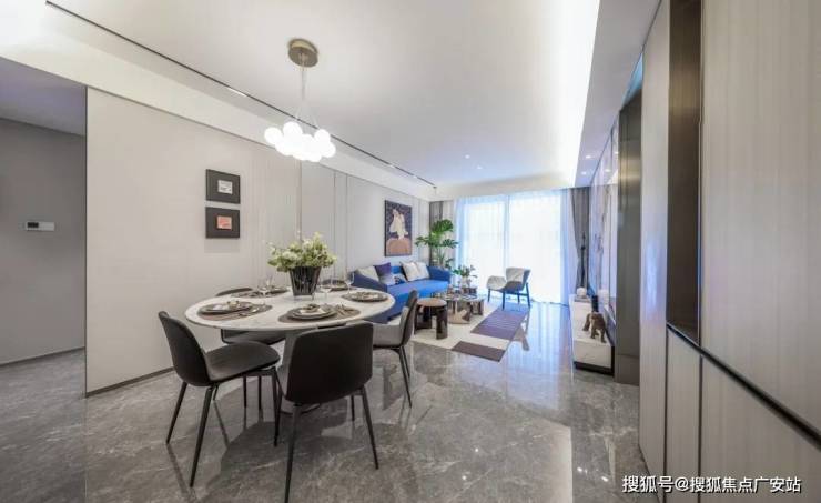 2、客厅双面背景墙:现在很多项目,连电视机背景墙都不做的情况下,翠栖府出人意料地做到“双背景墙”——电视机背景墙+沙发背景墙,开创“双背景墙”时代,其中电视机背景墙是大片岩板上墙,而沙发背景墙则是硬包的形式。提的一说的还有,主卧的背景墙,翠栖府这次也是“交付标准”。