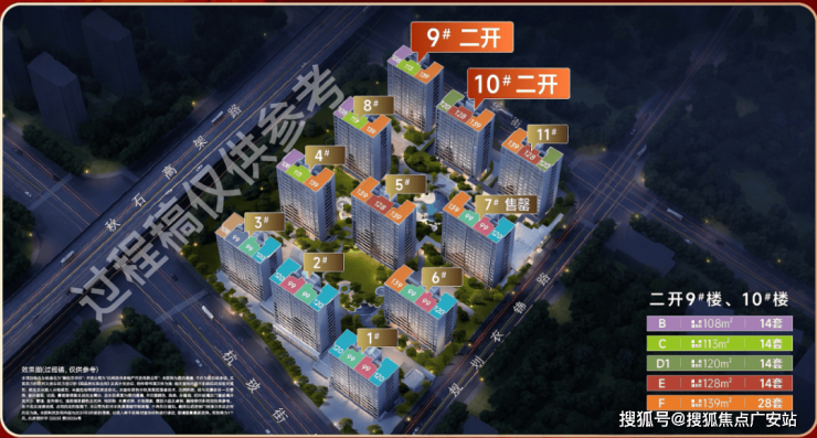 二开加推9#、10#:两幢共计84套,其中108㎡共14套、113㎡共14套、120㎡共14套、128㎡共14套、139㎡共28套。10#楼王正对中央景观水系,南向间距达到惊人的近65m,视野采光无敌;9#南向正对小区花园,西面毗邻规划绿化带,也属于第一次加推108㎡和113㎡,神户型、性价比极高。