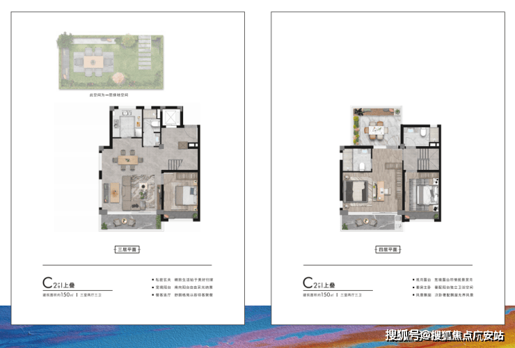 以上叠加均为独立入户设计,下叠拥享南北阔景花园、上叠有宽绰露台拥揽清风明月,并且上叠的电梯也都已给配置好了!
