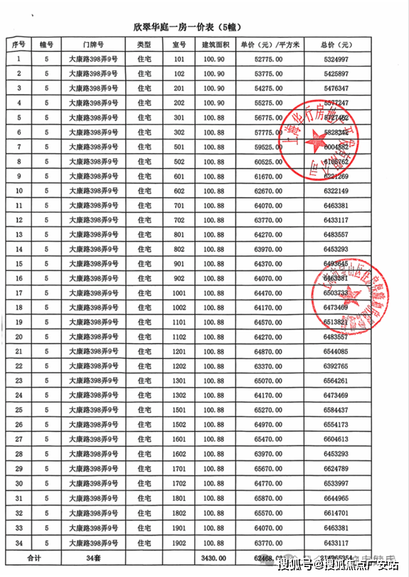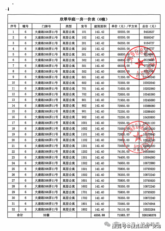 大华公园柏翠项目一房一价表▼