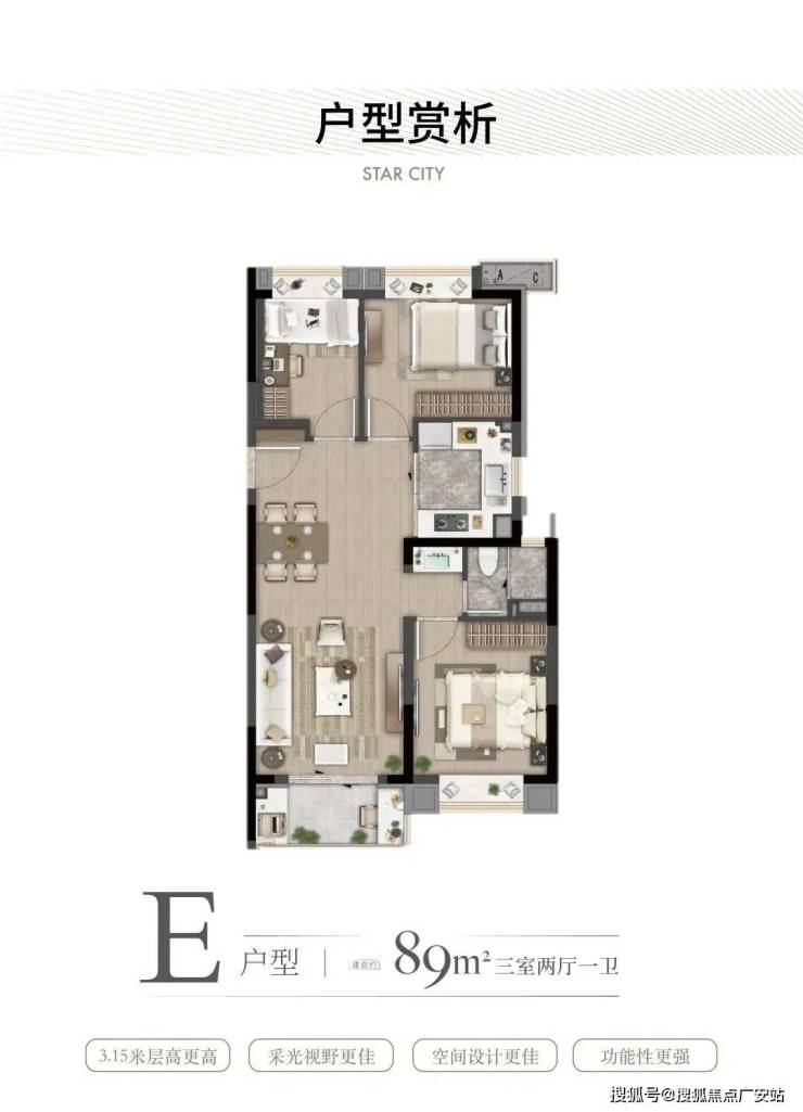· 建面约88㎡3房:大虹桥范围不到90㎡的户型大部分都只做到2房,而虹桥灿耀星城该面积段实现3房功能性,让自住客户一步到位,也让该产品进入二手市场后具备降维打击的优势!