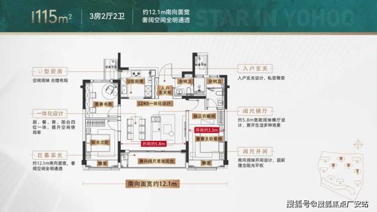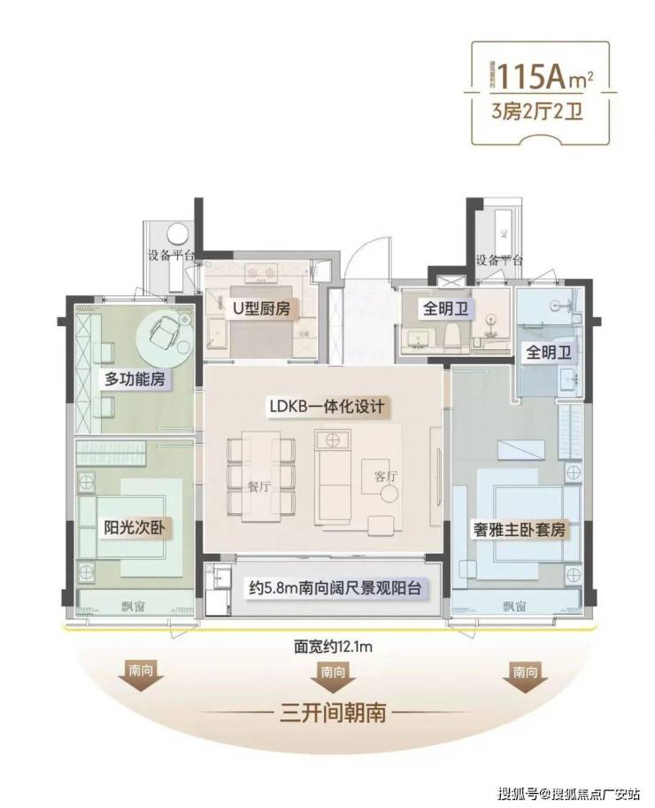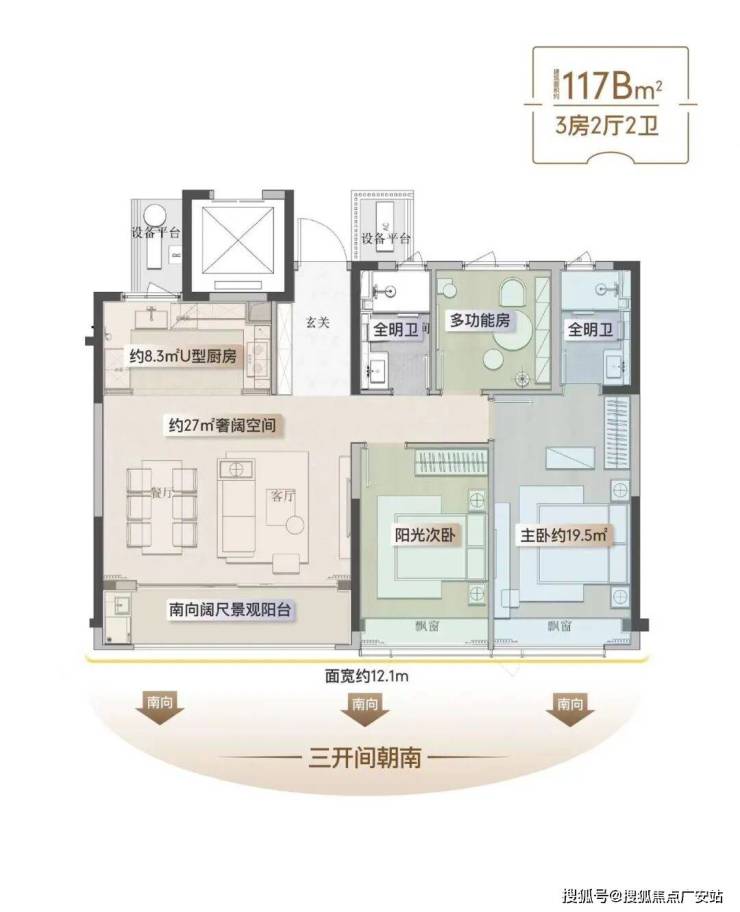约12.1m南向大面宽,IMAX巨幕,阳光满溢、通风俱佳。餐客厨阳台一体化,做饭聊天、饭后休憩动线超顺,轻松拿捏松弛感。