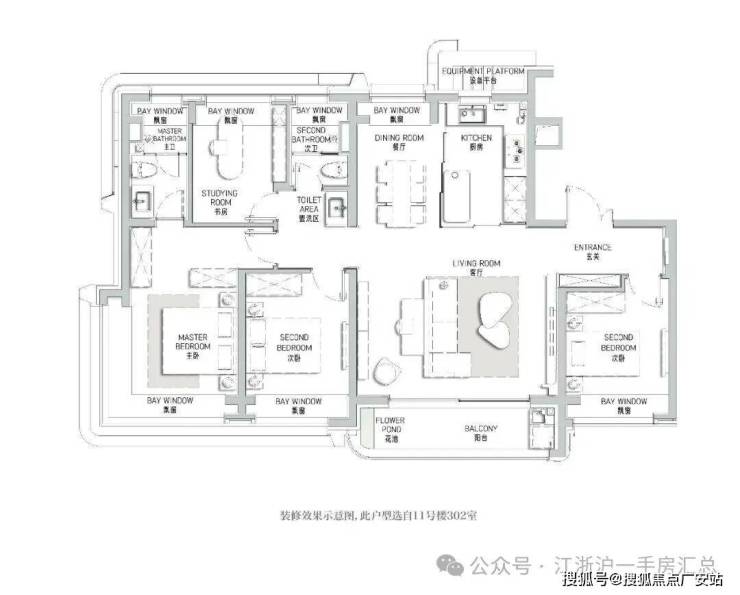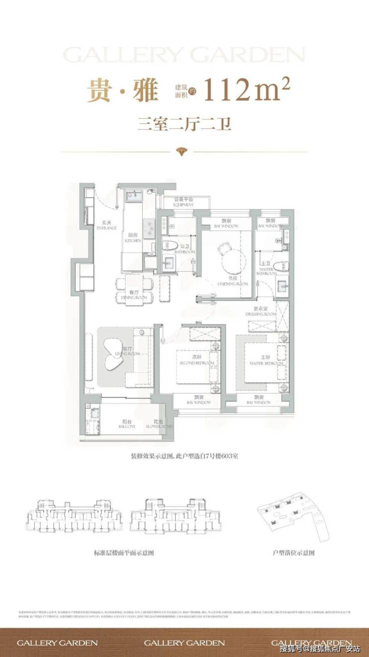 项目舍弃了传统逼仄的百平三房,将最小面积提升到了建面约112㎡,而这12个平方的提升,让整体户型的空间尺度感达到了新的高度。