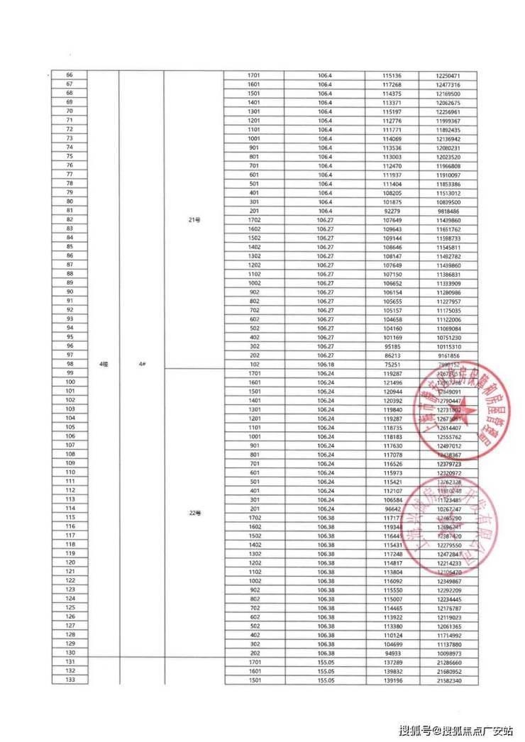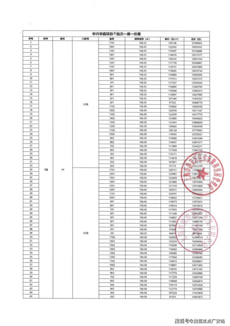 上期一房一价表: