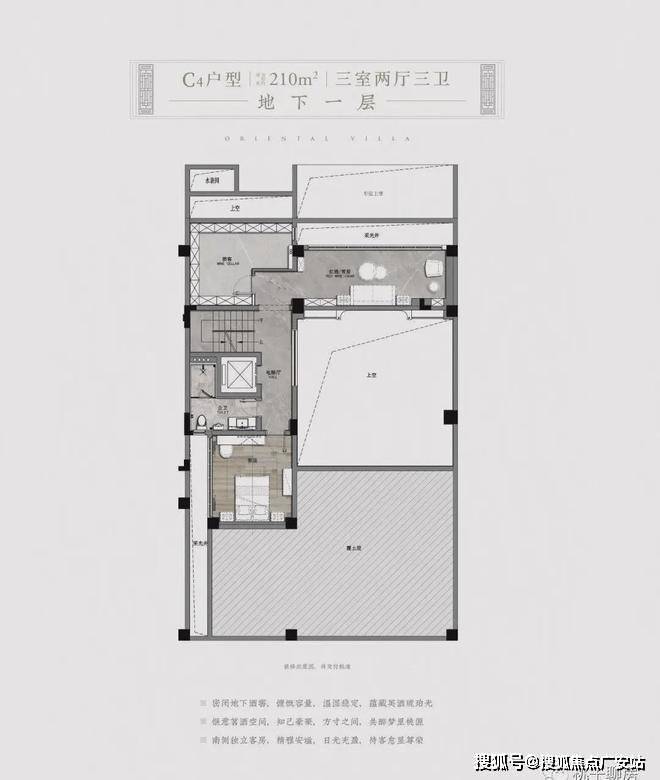 以项目东北角的建面约330㎡H户型为例,地下二层的室内可配置保姆房、