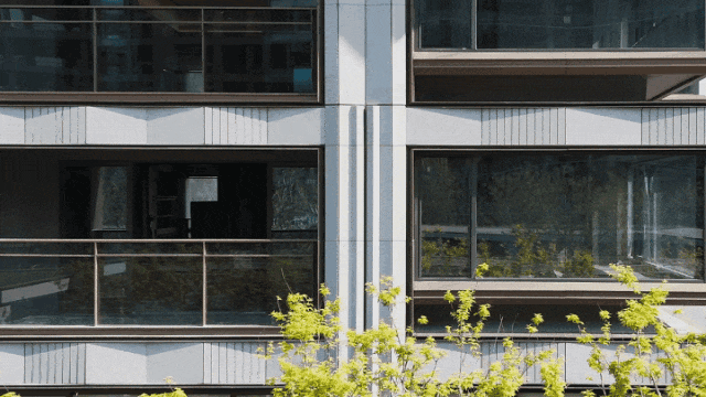 立面结构采用西方古典建筑经典制式“横三竖五”进行立面切分,如基座、中段、塔冠分为三段式,竖向阳台、飘窗分为五段式,极致中轴对称。设计以承载美为出发点,采用纯粹和质朴的空间和材质,从古典形态中提炼出简洁而有力的符号,强化了建筑的形式感和空间感。