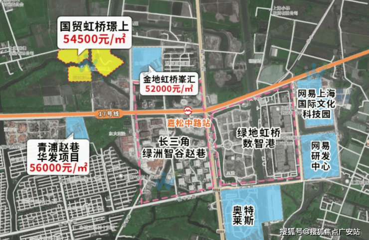 项目向东600米左右,就是运营中的17号线嘉松中路站和今年已开业的绿洲智谷花园里